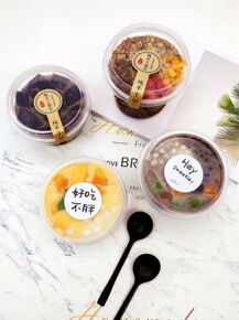 圆形一次性甜品打包盒子塑料烧仙草芋圆水果捞冰粉碗商...