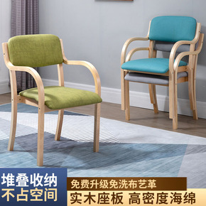 实木餐椅布艺简约曲木餐厅咖啡厅会议实木养老疗养椅家...