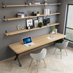 北欧实木书一体家用卧室双人电脑台式简约长条一字家装...