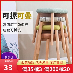 实木小凳子家用网红简约餐椅客厅矮凳大人木头方凳结实...