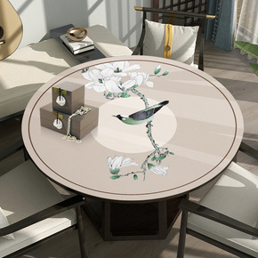 中式餐桌垫皮革圆桌桌布防水防油免洗防烫家用圆形桌面...