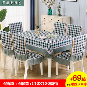 餐椅垫桌布套装简约现代椅垫椅套家用长方形茶几布艺通...