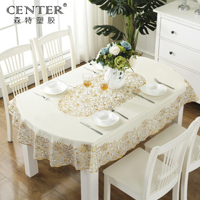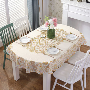 防水欧式椭圆形茶几塑料餐桌布米色烫金防油防烫免洗田...