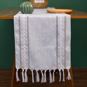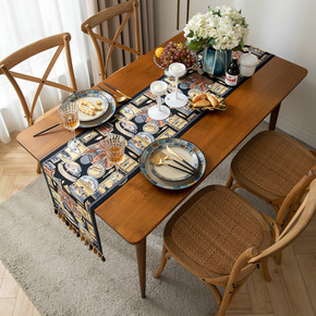 美式复古桌旗色织提花民族风流苏家用涤纶台布桌旗床尾...