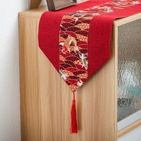 日式典雅和风棉麻桌旗 复古式茶几旗 料理店装饰民宿...