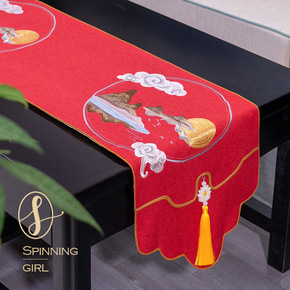 新中式桌旗古典蝉翼现代简约客厅中式奢华餐桌茶几布艺...