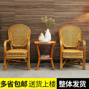 真藤藤椅单人中老年人办公护腰加固靠背椅休闲客厅三件...