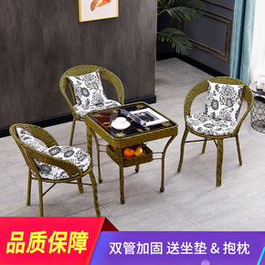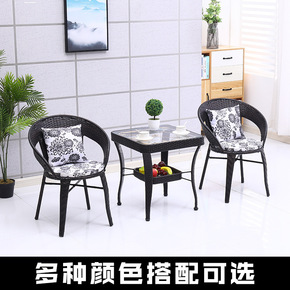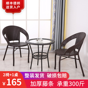 户外阳台藤椅三件套 庭院休闲露天桌椅简约现代茶几靠...