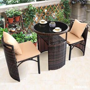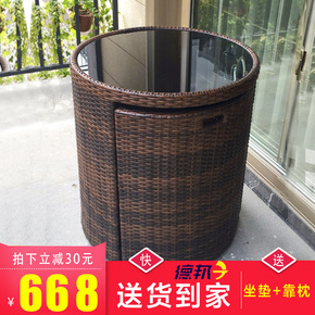 阳台桌椅三件套小户型一桌两椅组合休闲藤椅可收纳阳台...