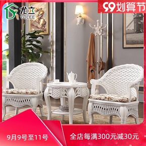 欧式藤椅三件套阳台桌椅茶几组合白色 客厅藤编单人休...