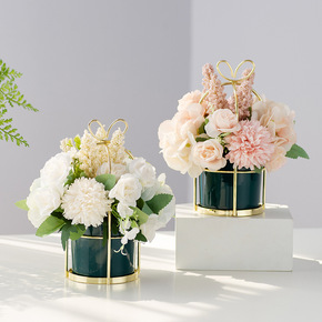 婚庆道具仿真花艺民宿酒店主桌花电镀花器婚礼堂软装橱...