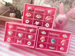 粉KT猫9格首饰盒九宫格美乐迪桌面抽屉盒双子星迷你...