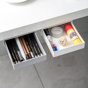 桌下抽拉式收纳盒塑料办公桌面文具杂物收纳可叠加多层...
