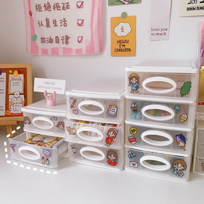 学生ins文具收纳盒抽屉式宿舍桌面杂物储物盒多层化...