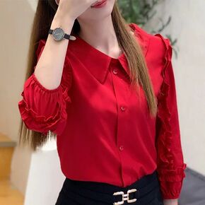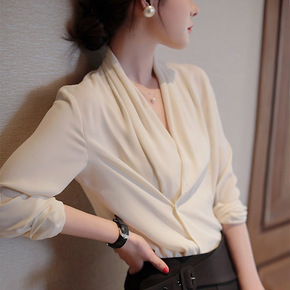 2022初春新款雪纺上衣丝滑雪纺V领长袖OL日系轻...