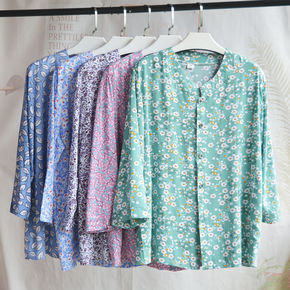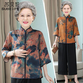 奶奶衬衫夏装棉绸女老年人绵绸衬衣妈妈人造棉上衣老太...