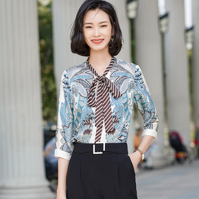 厂家专供春季衬衫女2022新款仿真丝雪纺纯色小个子...