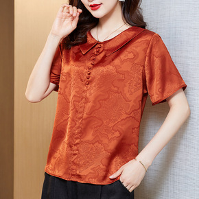 2022春夏季新款女装花萝纹仿真丝香云纱纯色V领修...