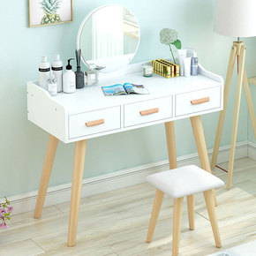 网红ins小仿实木梳妆台卧室经济型化妆收纳柜一体现...