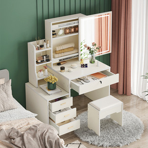 轻奢梳妆台卧室带灯穿衣镜收纳柜一体小户型多功能现代...