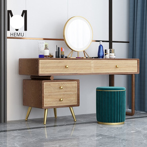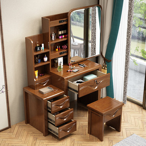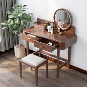 厂家实木梳妆台主卧室现代简约胡桃木轻奢化妆台收纳桌...