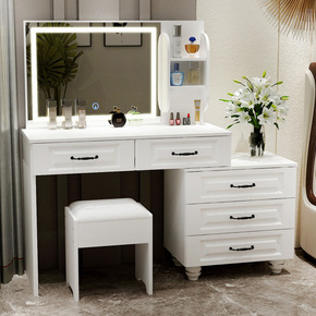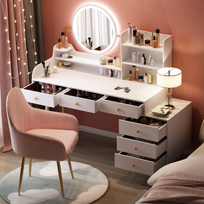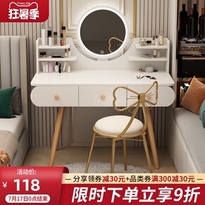 梳妆台卧室 收纳柜一体化妆台现代简约翻转LED灯镜...