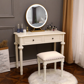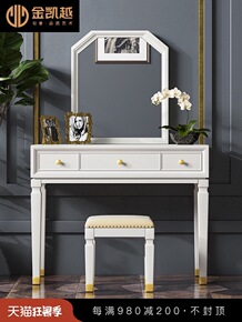 轻奢北欧田园梳妆台实木卧室ins网红化妆台带灯简约...