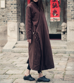 纳兰/原创大码棉麻女装中式开衫立领便衣棉服 复古印...