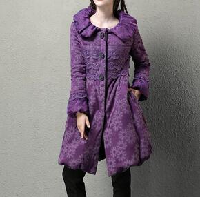 春新品女装优雅收腰棉服大摆长袖外套棉衣 紫湘...