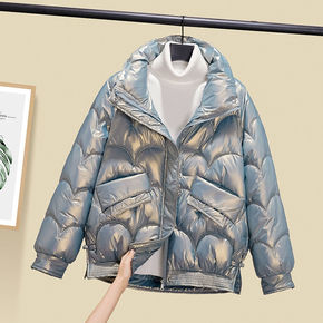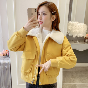 2021冬季法式小个子圆领假口袋珍珠宽松夹棉加厚流...