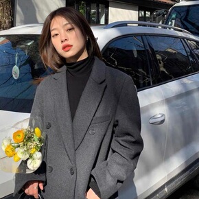 加厚毛呢外套女双排扣西装领女装2021冬装新款网红...