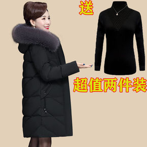 妈妈冬装外套棉衣中长款加厚羽绒棉服2021新款中老...