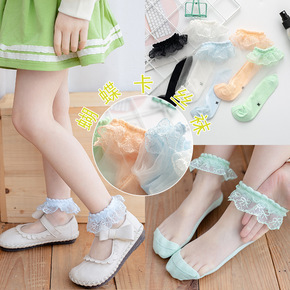 玻璃丝卡丝儿童短袜夏季薄款蕾丝花边袜女童公主网眼袜...