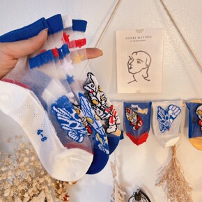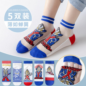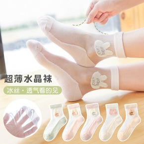 新品儿童卡丝袜薄款透气卡通玻璃丝宝宝袜棉底短袜春夏...