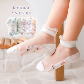 蕾丝花边儿童袜子夏季薄款棉底公主宝宝袜可爱水晶丝女...