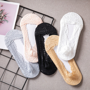 船袜女冰丝袜子夏季薄款蕾丝棉底硅胶防滑高跟鞋魔术袜...