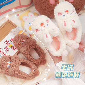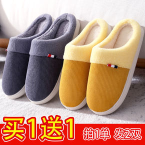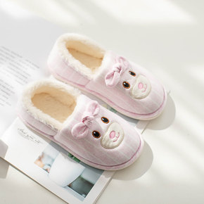买一送一棉拖鞋女情侣家居冬天防寒保暖厚底防滑包跟兔...