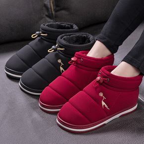 冬季加绒加厚羽绒棉鞋女居家增高厚底外穿包跟情侣休闲...