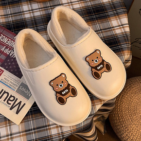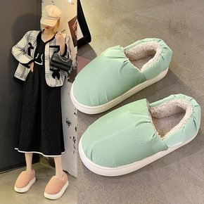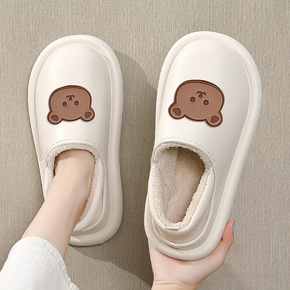 防水棉拖鞋女冬天厚底可爱室内保暖居家包跟月子毛绒棉...