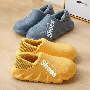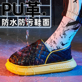 情侣棉拖鞋女防水厚底冬季居家室内防滑地板保暖包根家...