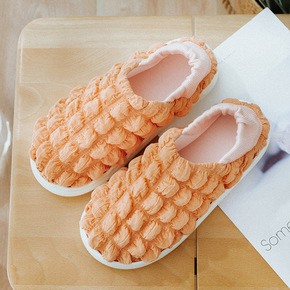 新款菊花简约秋冬季棉拖女室内防滑厚底男居家情侣毛绒...