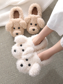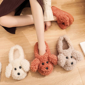 冬季包跟棉鞋女可爱卡通狗狗毛毛拖鞋女居家保暖厚底情...
