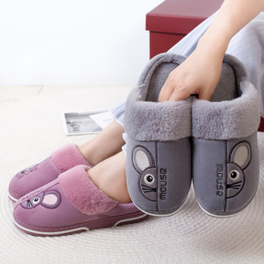 冬季室内情侣居家毛毛绒拖鞋男居家厚底月子棉拖鞋女冬...