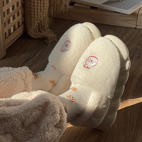 家用棉拖鞋室内可爱冬天包跟月子鞋毛绒产后日系厚底带...