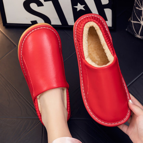 秋冬季真皮棉拖鞋女包跟厚底家居包脚跟室内家用皮拖鞋...