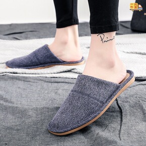 日式无印全棉家居拖鞋良品纯色情侣地板拖鞋秋冬加绒静...