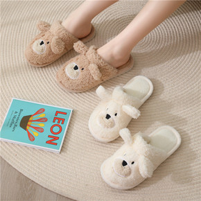 原创韩国ins可爱卡通立体小熊头棉拖鞋居家毛绒拖鞋...
