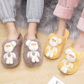 小熊地板拖鞋情侣可爱设计感新款2021秋冬季毛绒包...