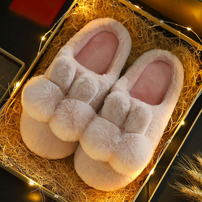 棉拖鞋女家居家用可爱毛毛绒情侣秋冬季室内保暖冬天厚...