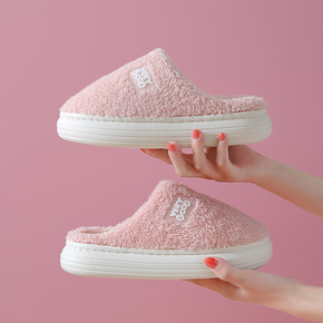 厚底棉拖鞋女低跟家用秋冬季家居室内月子保暖情侣灯芯...